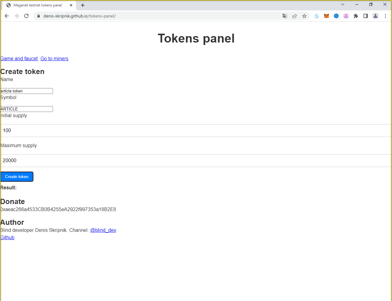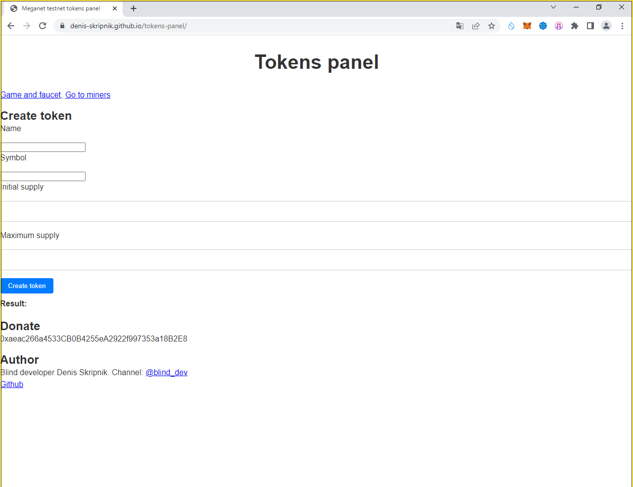 Идём по ссылке "Go to miners" или по url https://denis-skripnik.github.io/tokens-panel/miners.html