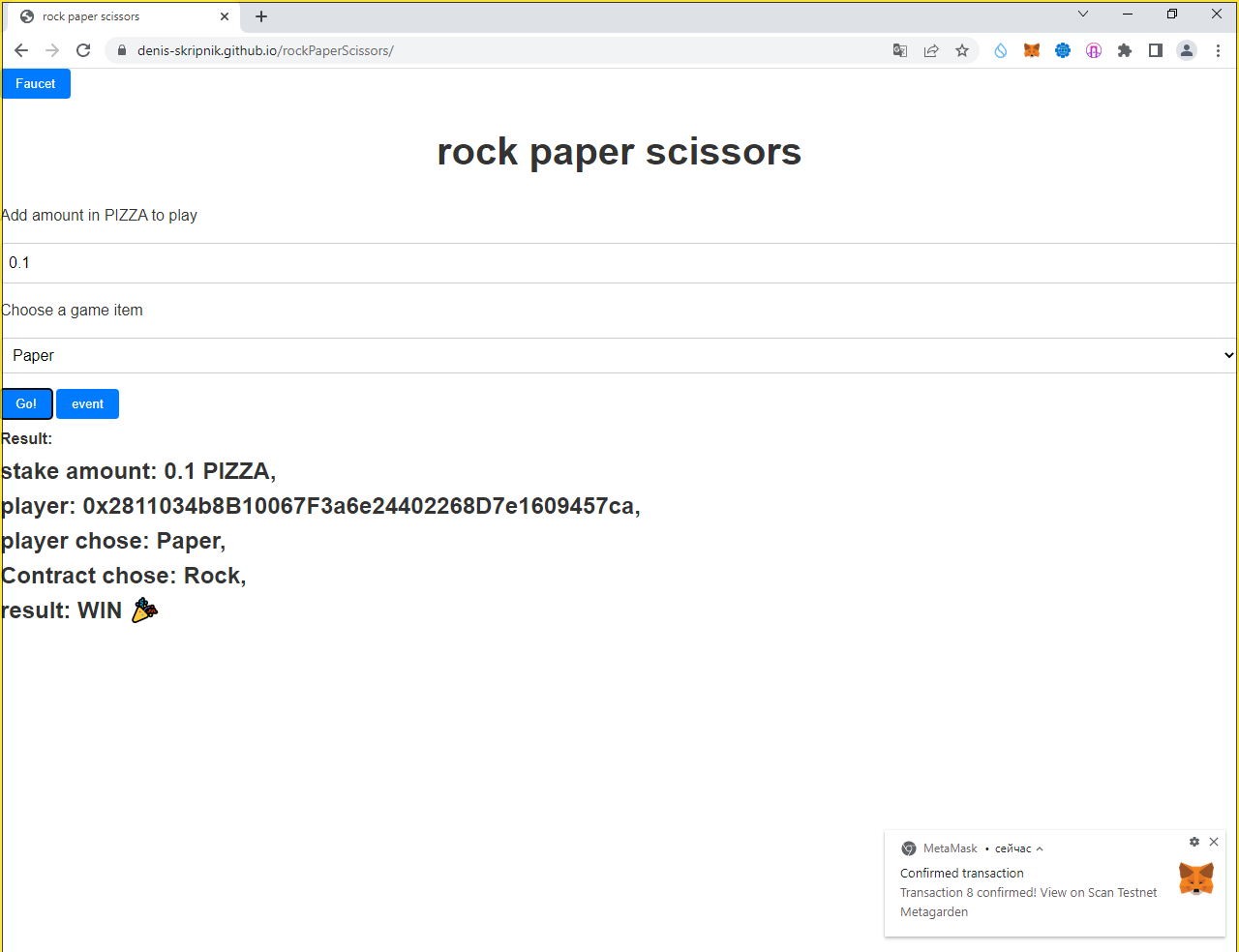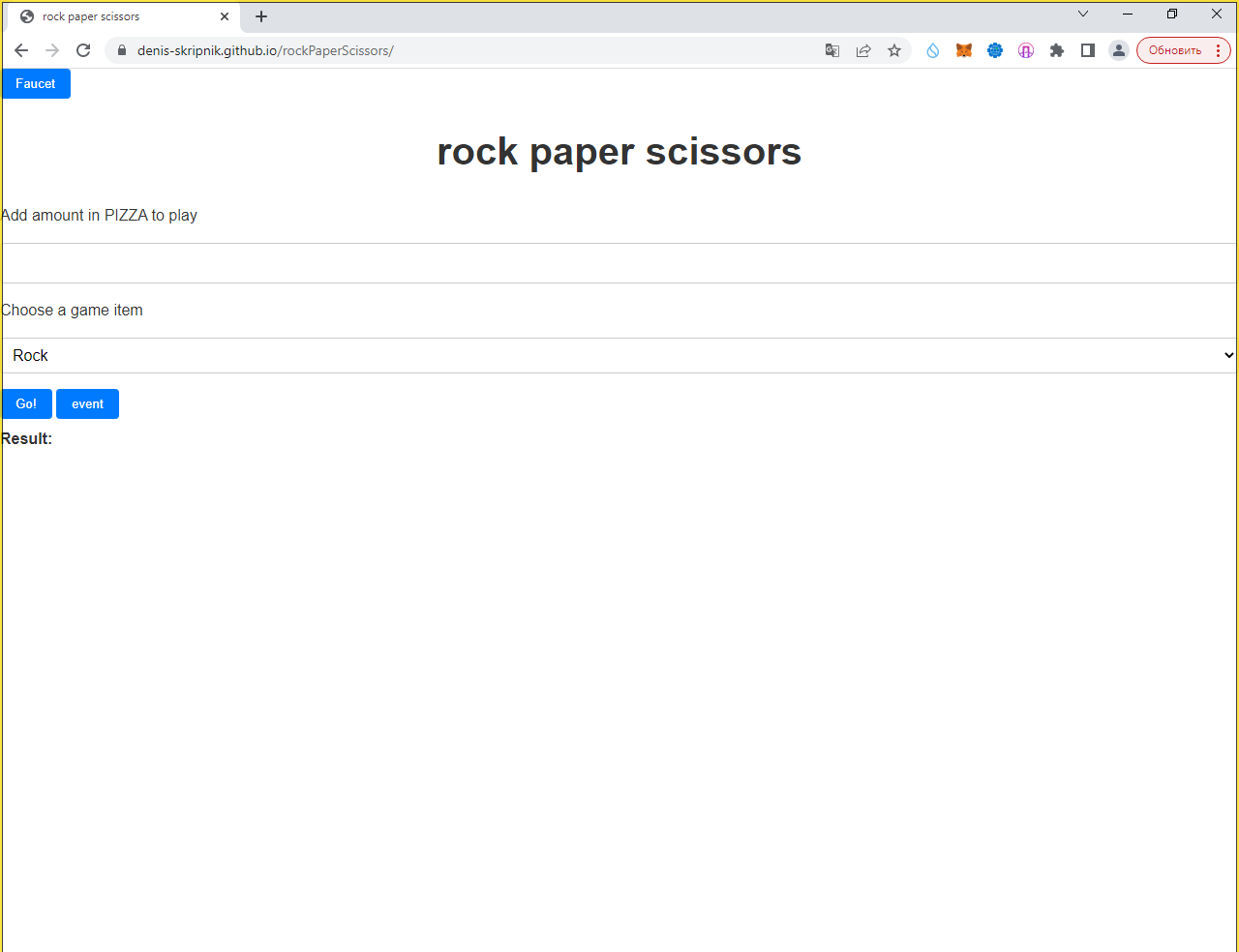 Далее идём на https://denis-skripnik.github.io/rockPaperScissors/