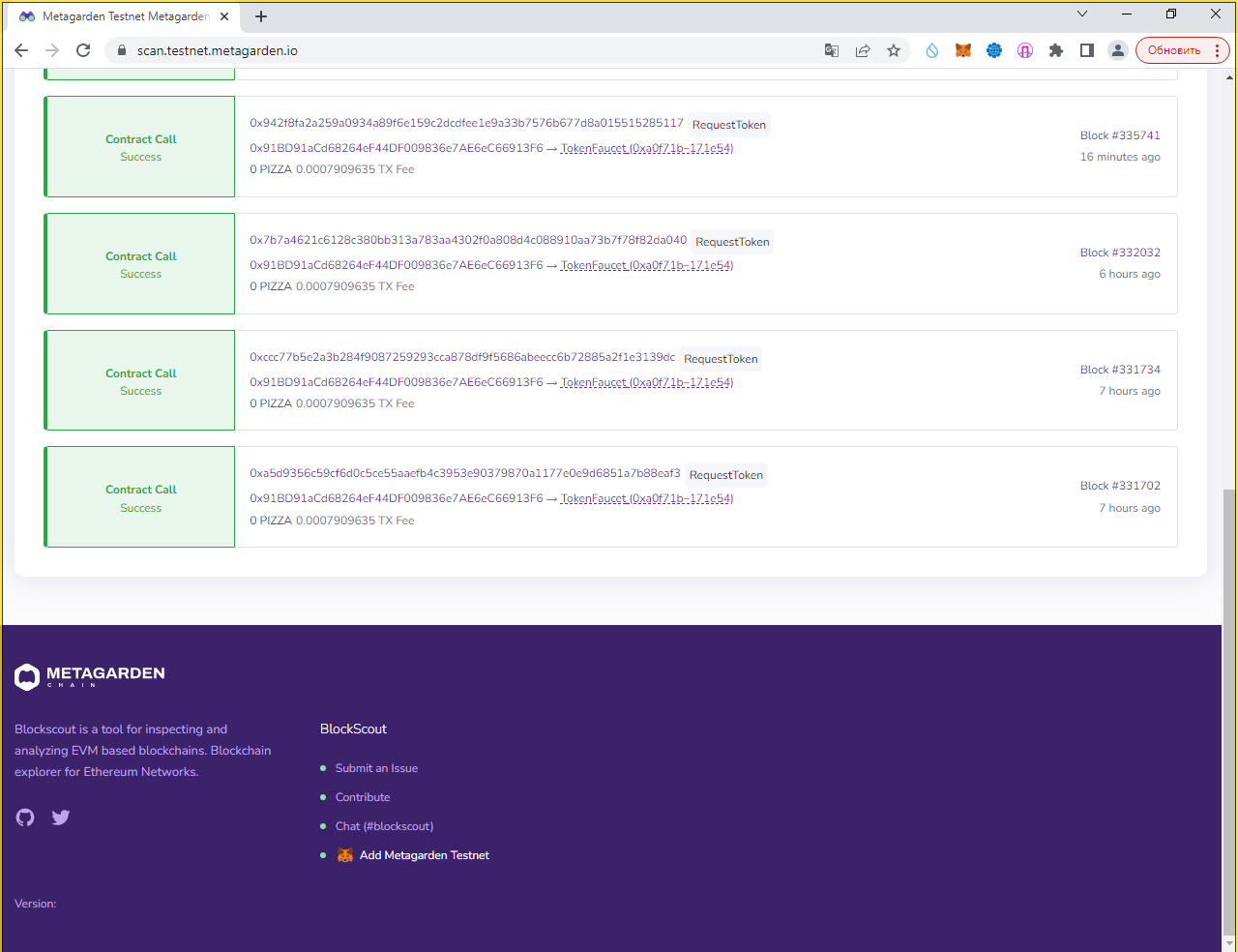 Для начала идём на https://scan.testnet.metagarden.io/