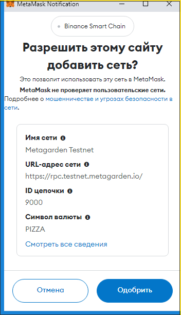 Находим "Add Metagarden Testnet" и кликаем: