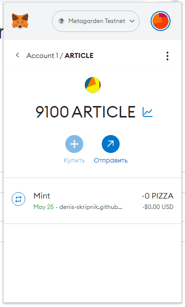 И жму "Mint". Важно, что минтить может только владелец смартконтракта токена, т. е. вы, если его создали: