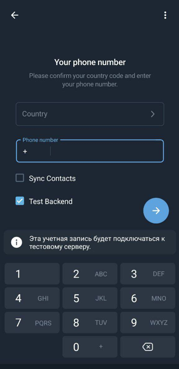 Для того чтобы зайти в аккаунт с тестового номера который начинается на +999, то нужно зайти опять же как и в прошлом способе на тестовый сервер нажав на десктопной версии Shift + Alt + ЛКМ или через бета версию Telegram для андроид.