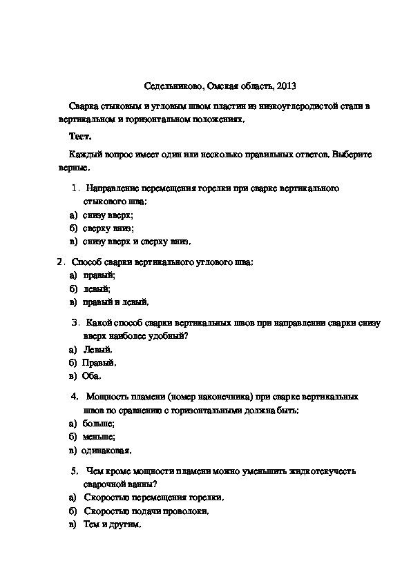 Тесты для сварщиков с ответами