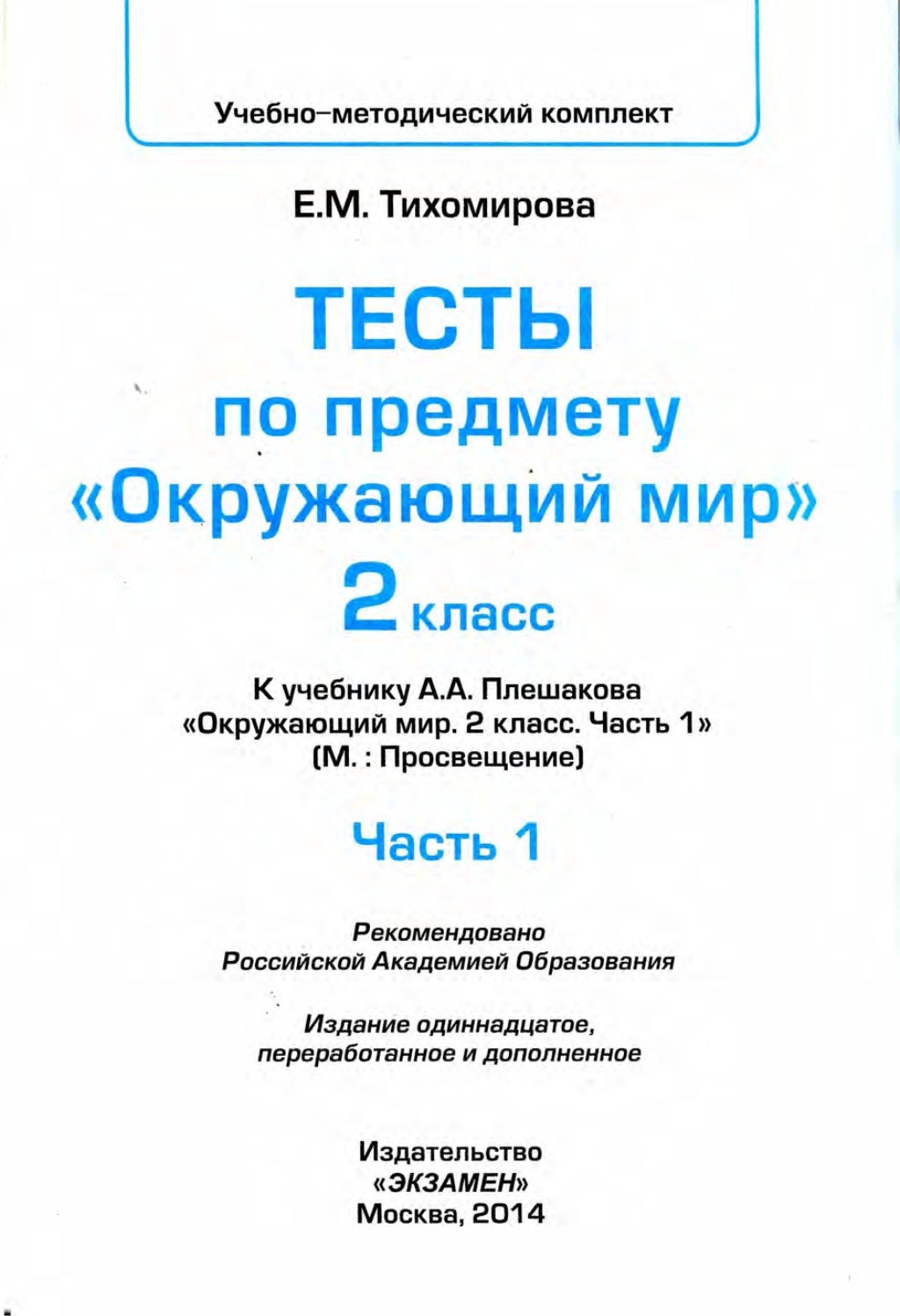 Тесты к учебнику плешакову 2 класс