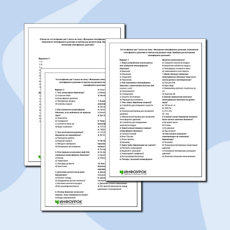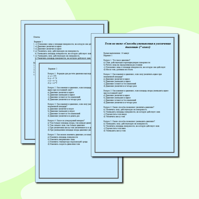 Тесты по теме давление 7 класс 125 фото