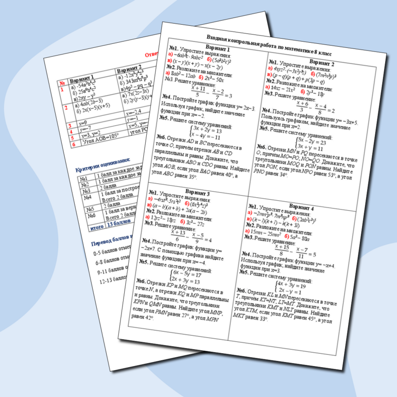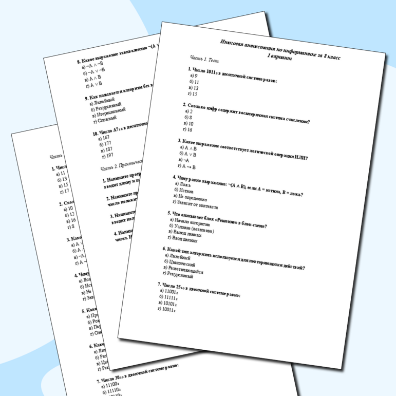 Тесты за 8 класс по всем предметам