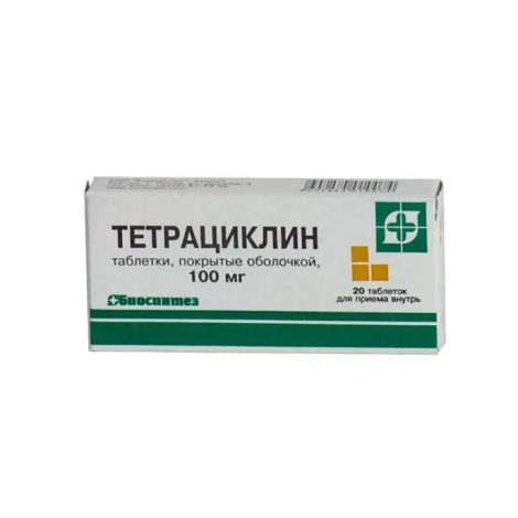 Тетрациклин — полная инструкция по применению, цена в аптеках Украины: Киев, Харьков, . . . таблетки, покрытые пленочной оболочкой 100 мг блистер в пачке, № 20 .