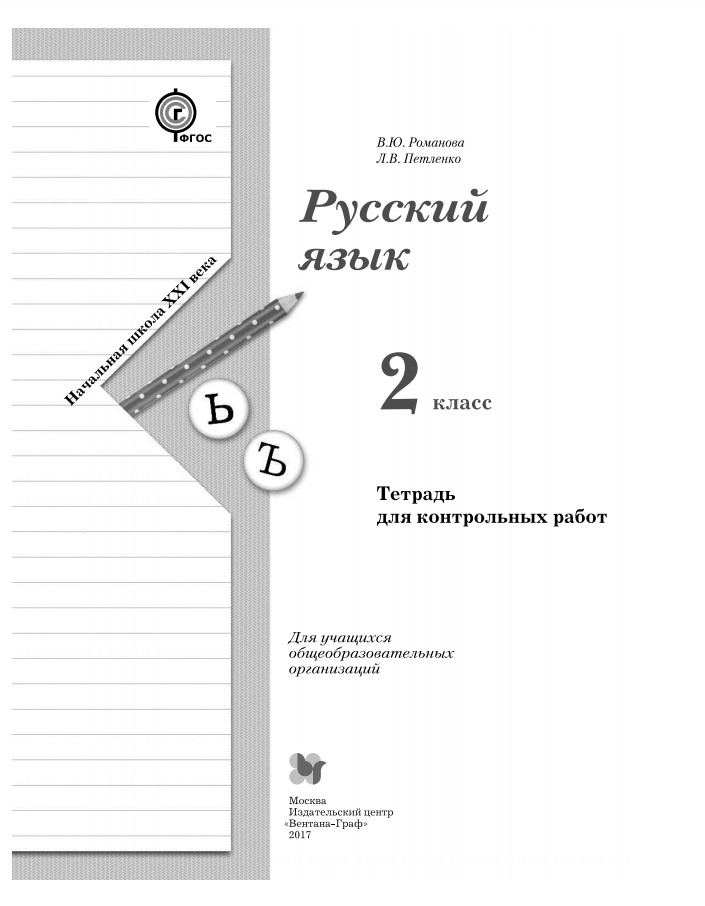 ГДЗ по русскому языку за 2 класс тетрадь для контрольных работ Романова, Петленко . Авторы: Романова В .Ю ., Петленко Л .В . . Издательство: Вентана-граф 2018 .