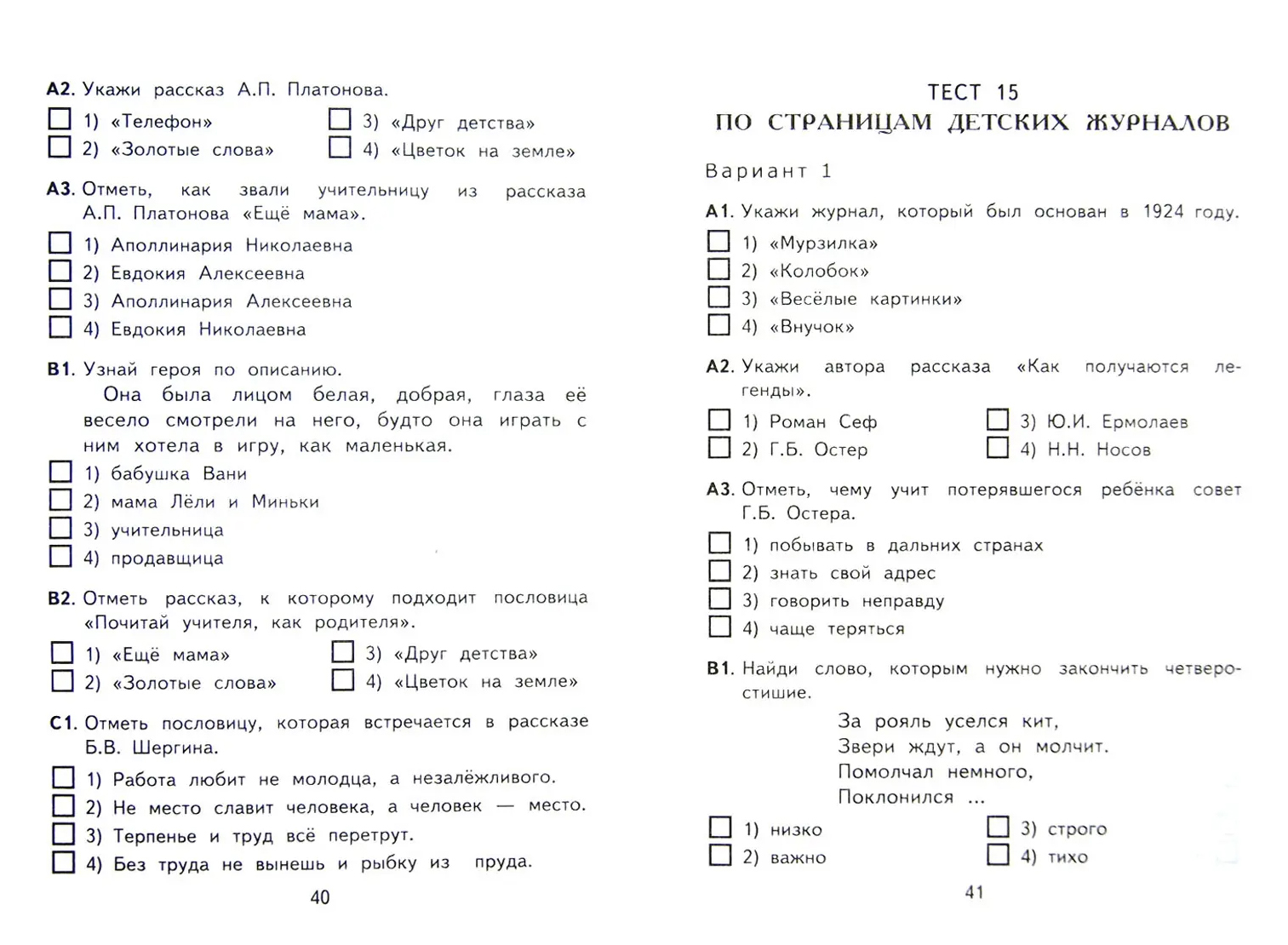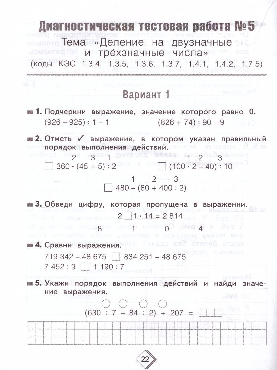 Тетрадь диагностических тестовых