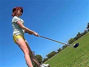 Una bionda sexy riceve lezioni di golf dal suo istruttore e prima che il loro tempo insieme finisca, lei lo succhia sul campo e loro vanno dentro per scopare forte .