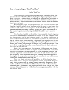 " Thank you , Ma'am"โSample body Paragraph #1 . Mrs . Jones proves to be a trustful person . She decides that Roger needs to wash and to eat and that she will take him to her home in order to do so . "'I got a great mind to wash your face for you,' " she tells Roger . " 'You ought to be my son . I would teach you right from wrong .