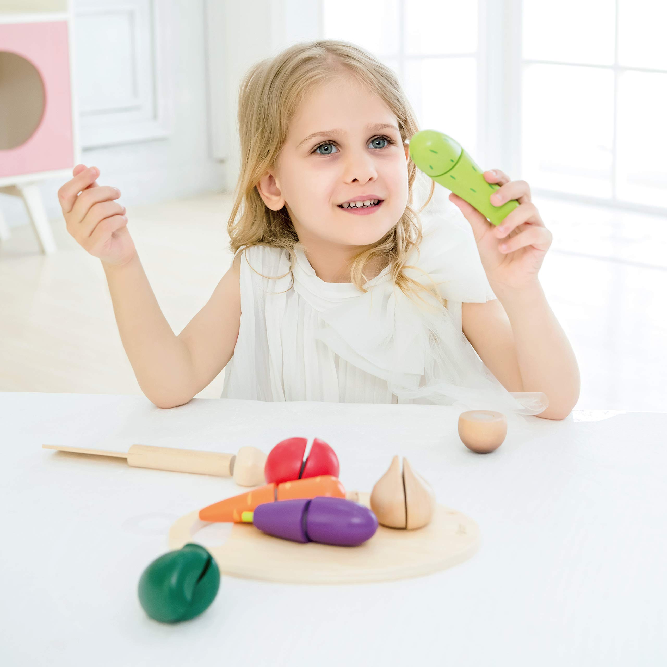That Babe likes playing with vegetables