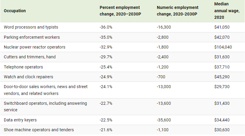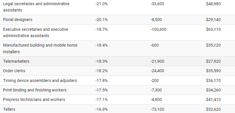 The Top 20 Fastest Declining Jobs