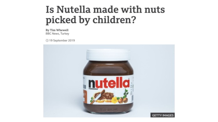 Hazelnut gathering is backbreaking work and 70%+ of production comes from Turkey, where there are charges of child labor (often Kurdish migrants)...Ferrero faces criticism over this:
