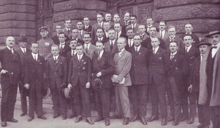 Two weeks later, on April 16, the unit appeared in public for the first time during the funeral of Ernst Pöhner, the former Munich police chief and a participant in the Hitler-Ludendorff putsch. Anticipating later ceremonial functions of the SS, the unit acted as torchbearers during the funeral procession. Four men flanked the deceased's coffin to the right and left.