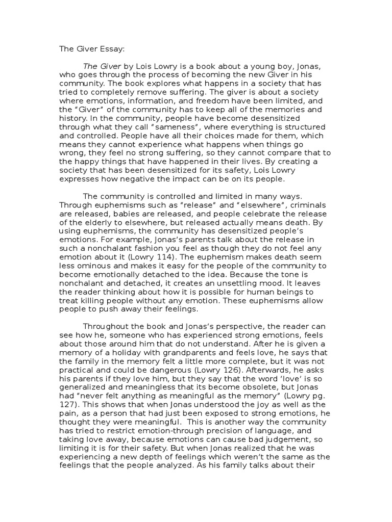 The Giver Essay - 562 Words | Bartleby