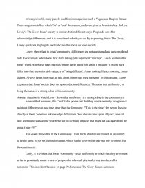 PDF Example Literary Essay: The Giver by Lois Lowry