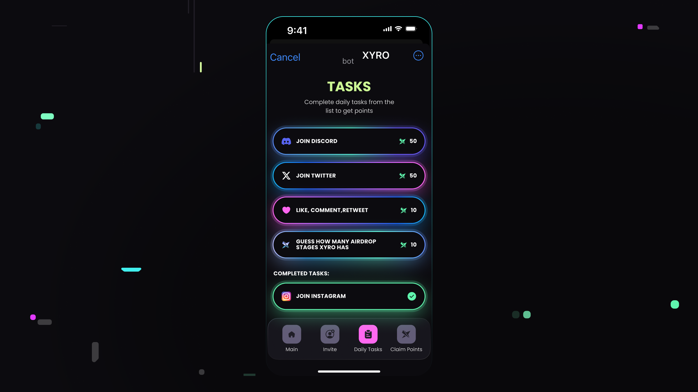Completing these tasks not only earns you points but also keeps you connected and active within the XYRO community.