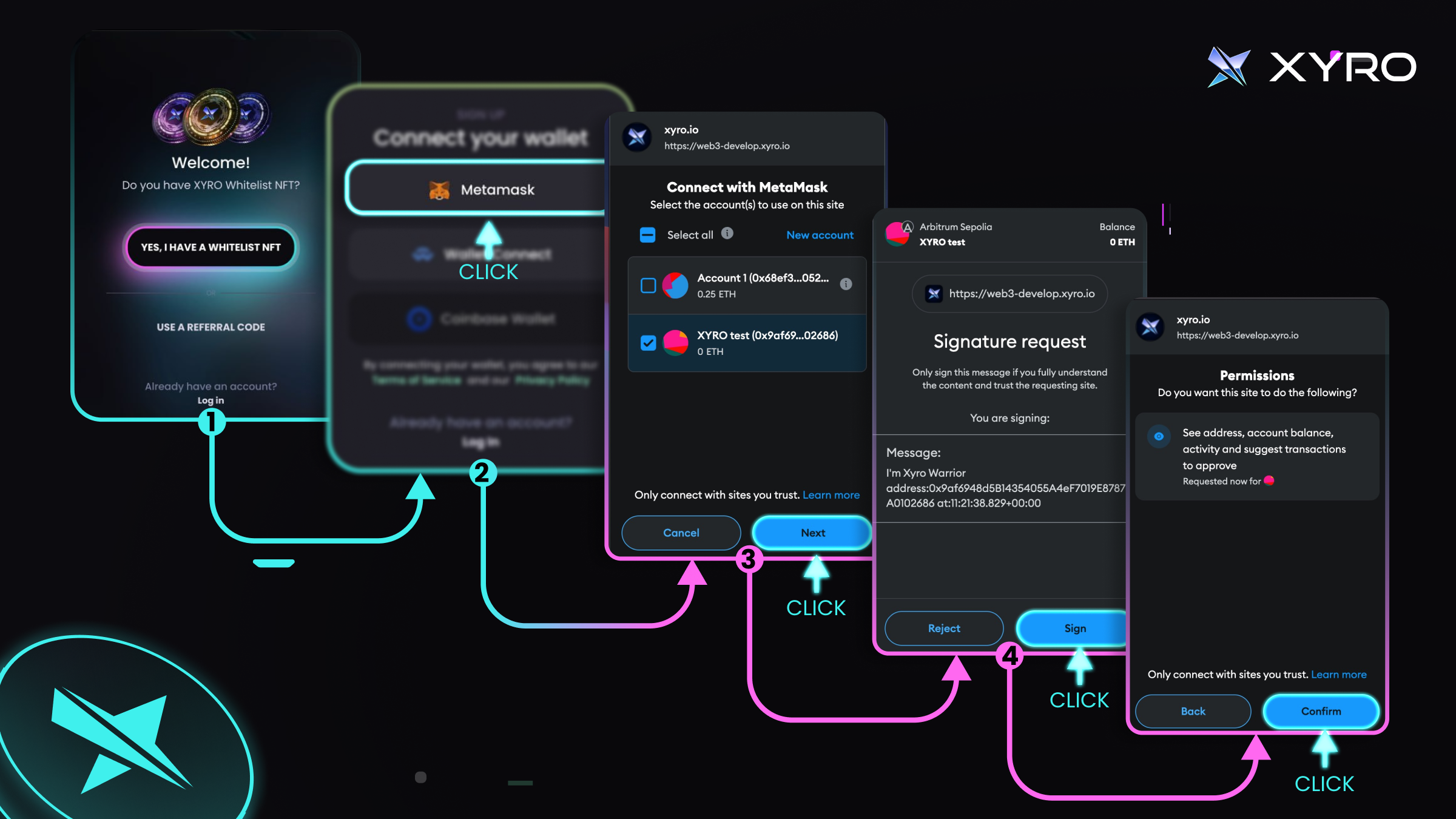 If you’re whitelisted and have an XYRO Whitelist NFT in your wallet, you can log in using it.