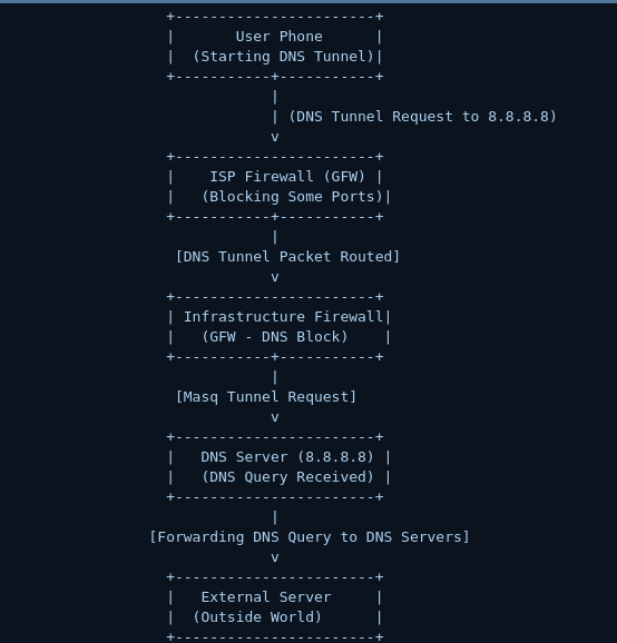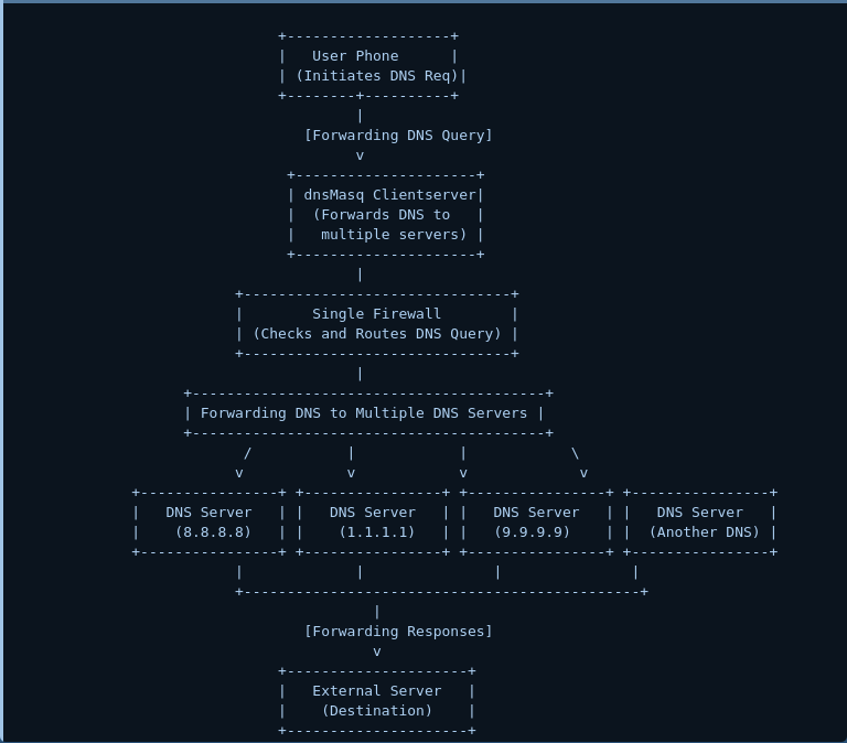 We tested a simple setup using dnsmasq as a forward proxy, coupled with multiple public servers and a client. The concept is to send your DNS request to a datacenter, which acts as a middle proxy that multiplexes the request over multiple servers (as many as needed). All these requests go through a single firewall—one that is far less restrictive than mobile ISP firewalls.