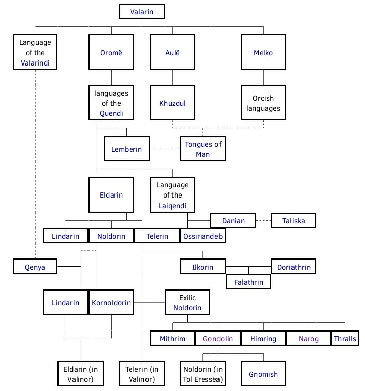 Associated with the text of Lhammas A and B respectively are two 'genealogical' tables, The Tree of Tongues, both of which are reproduced here <the only found version is included there - admin of @TheSilmarillion>. The later form of the Tree will be found to agree in almost all particulars with the text printed; differing features in the earlier form are discussed in the commentary.