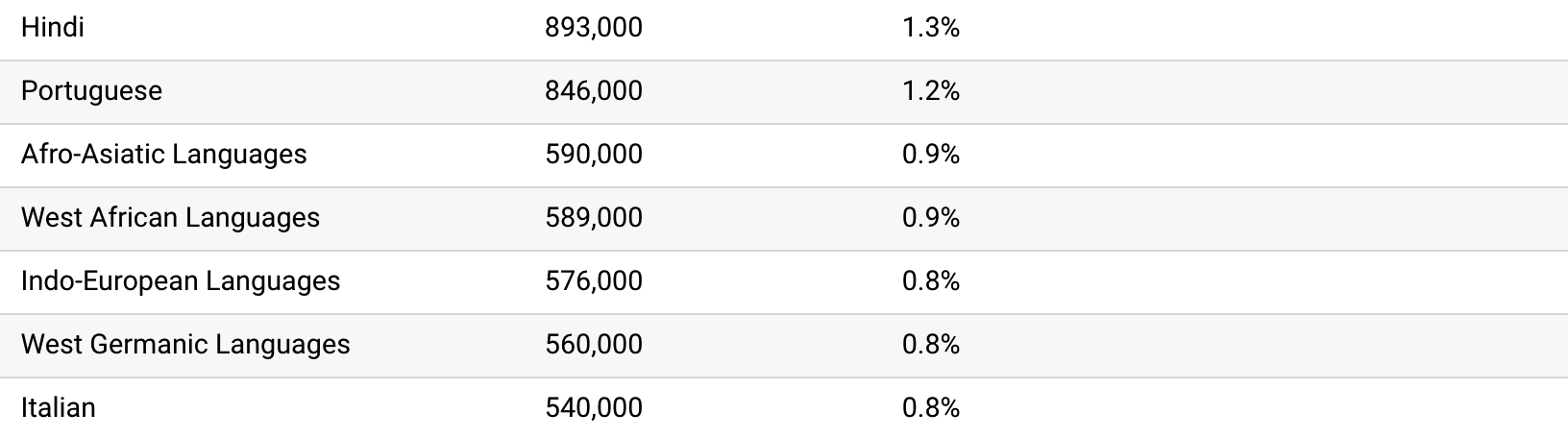 Estimated number of speakers nationally: 3,495,000