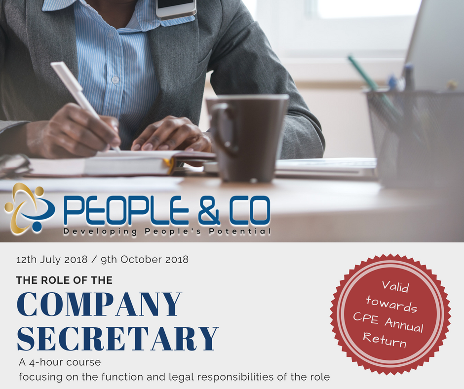 Despite the name , the role is not a clerical or secretarial one in the usual sense . The company secretary ensures that an organisation complies with relevant legislation and regulation , and keeps board members informed of their legal responsibilities . Company secretaries are the company ’ s named representative on legal documents , and it is their responsibility to ensure that the company and its directors operate within the law . It is also their responsibility to register and communicate with shareholders , to ensure that dividends are paid and to maintain company records , such as lists of directors and shareholders , and annual accounts .