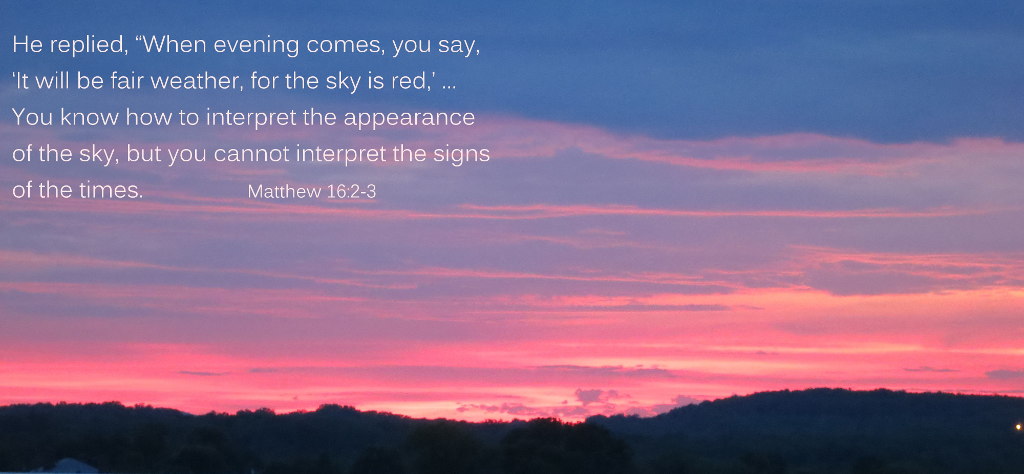 3 And in the morning, It will be foul weather to day: for the sky is red and lowering. O ye hypocrites, ye can discern the face of the sky; but can ye not discern the signs of the times?