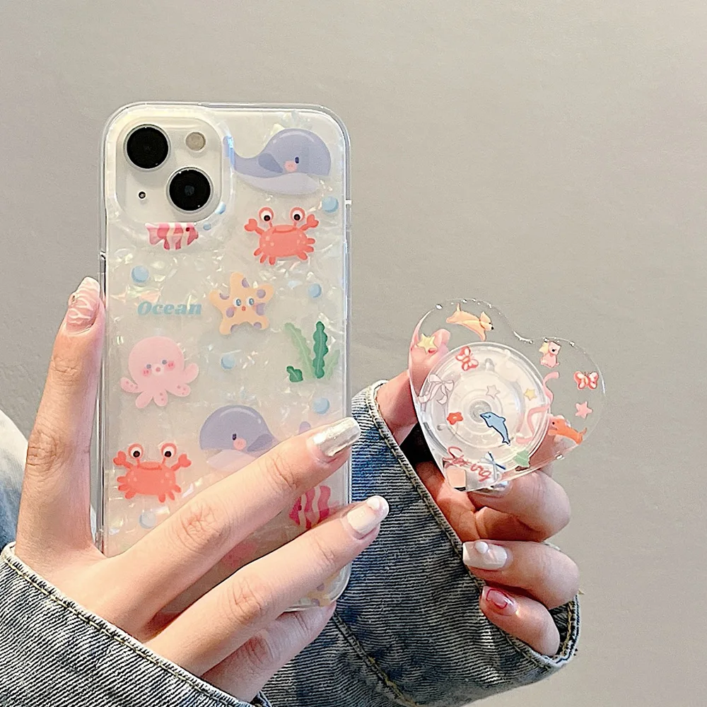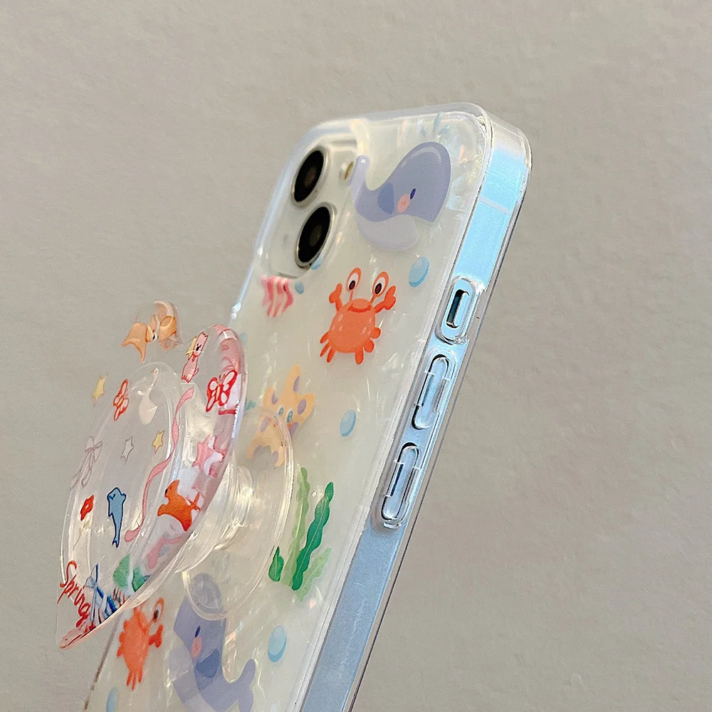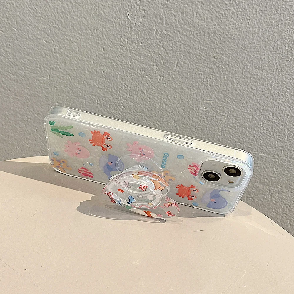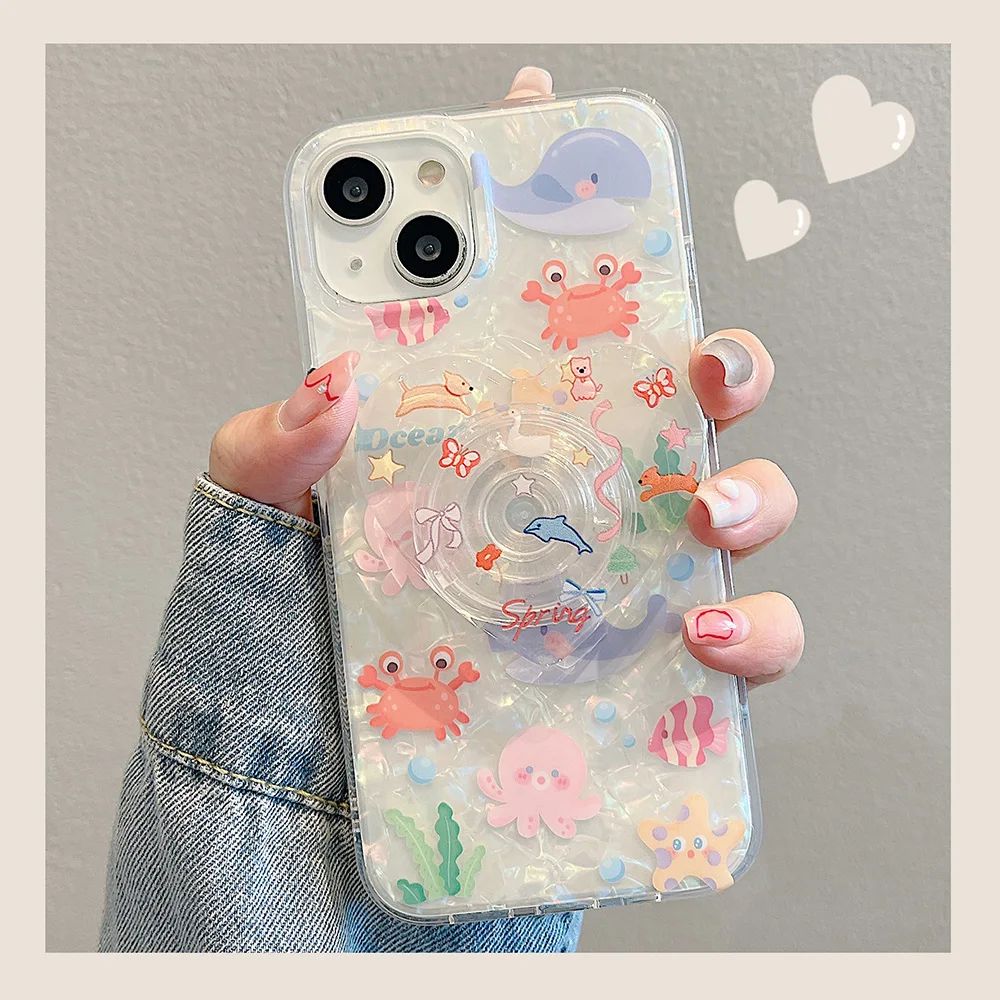 The Underwater World Shell Pattern With Holder Phone Case For iPhone 15 Pro Max Case iPhone 14 13 12 Pro Max Stand Back Covers - Купить с бесплатной доставкой