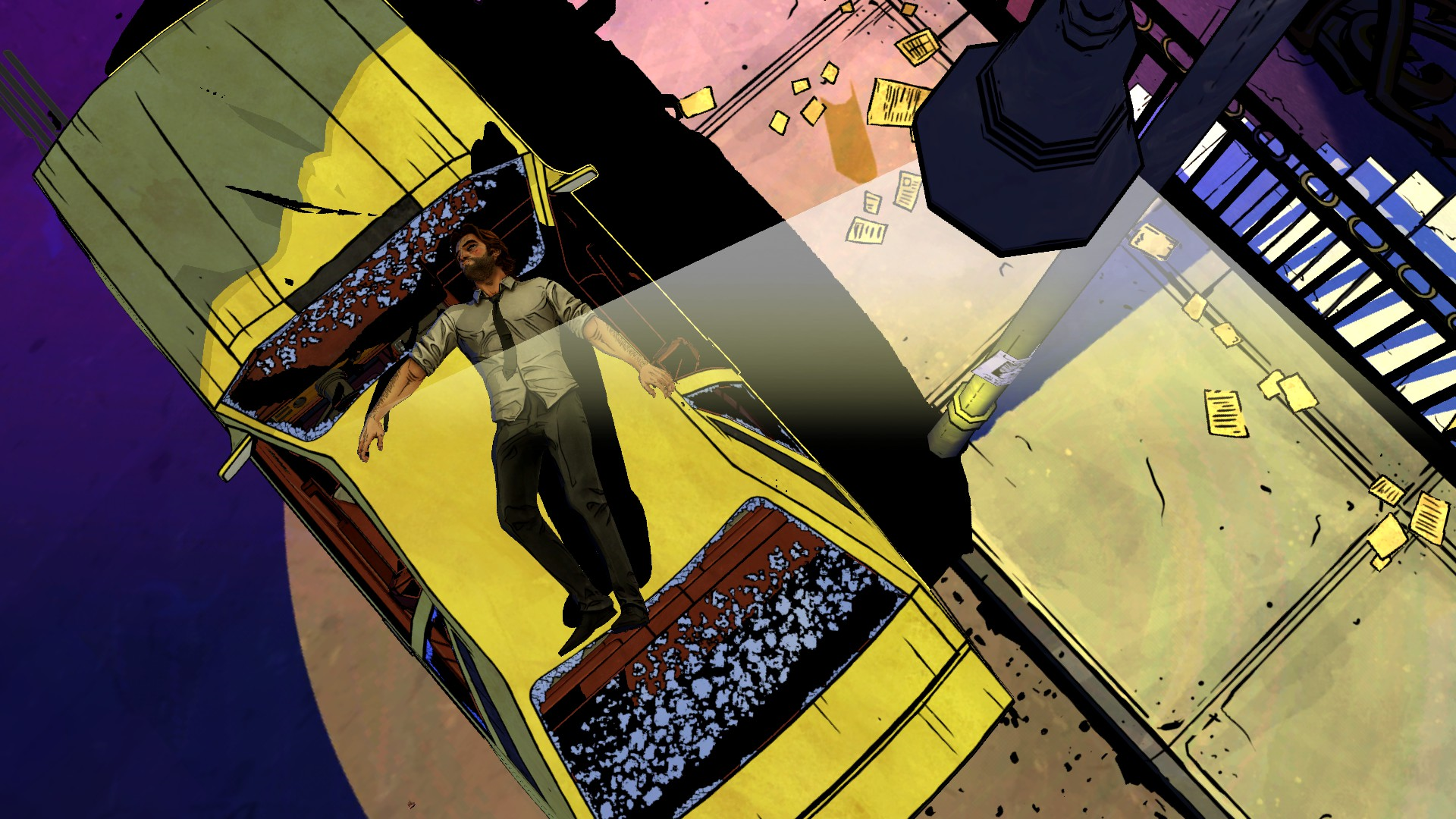 В конце драки оба вылетают с окна и падают на машину Жебба.