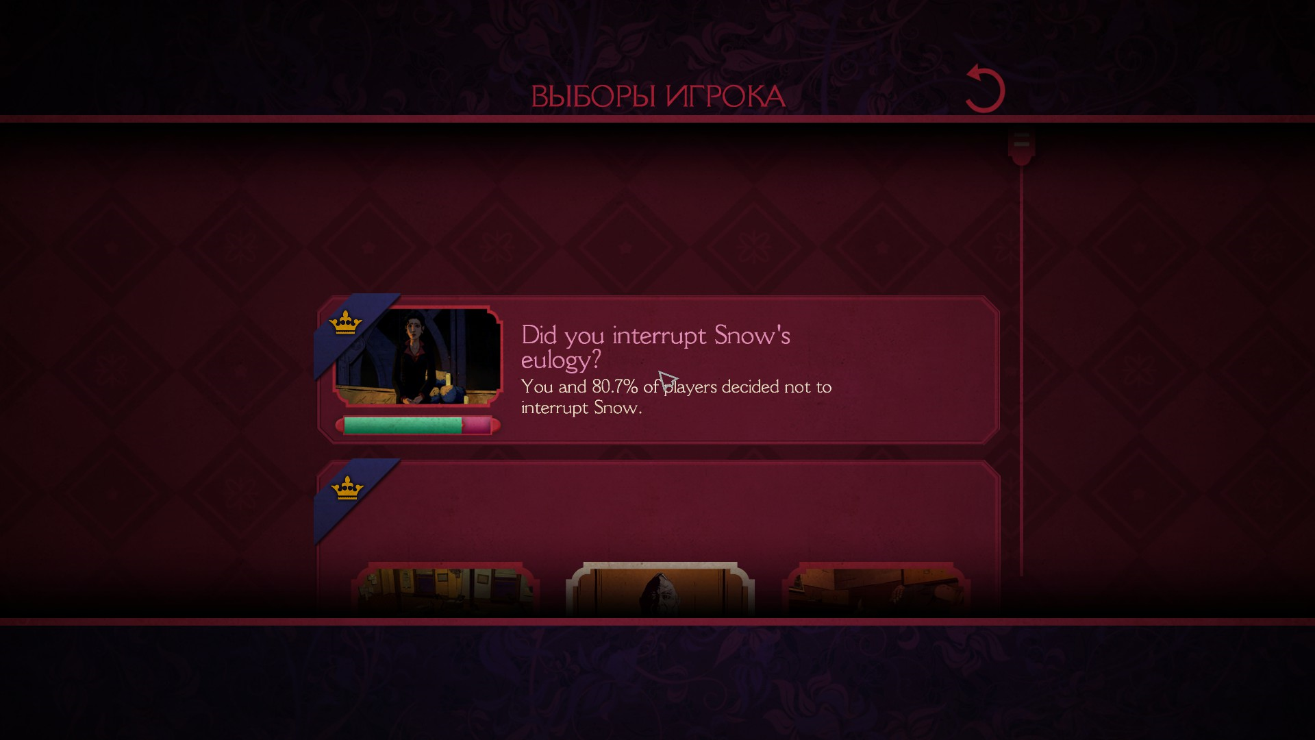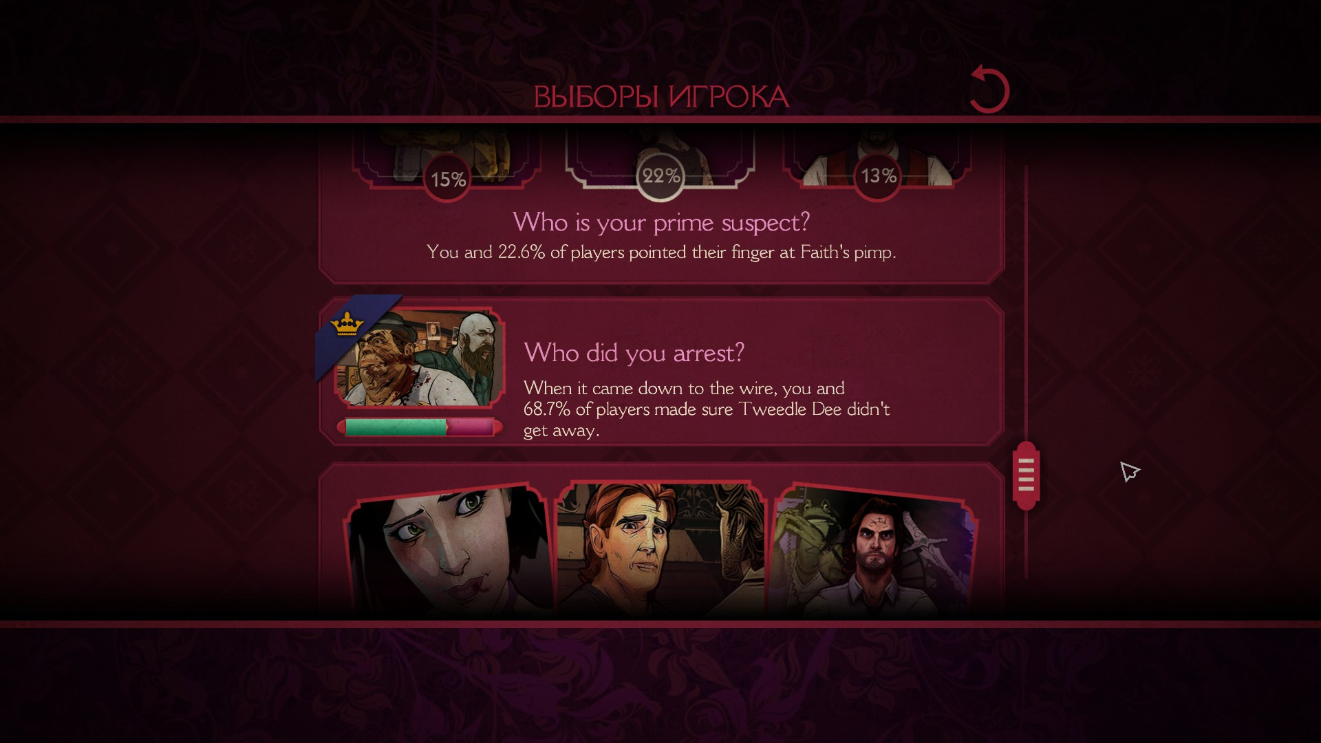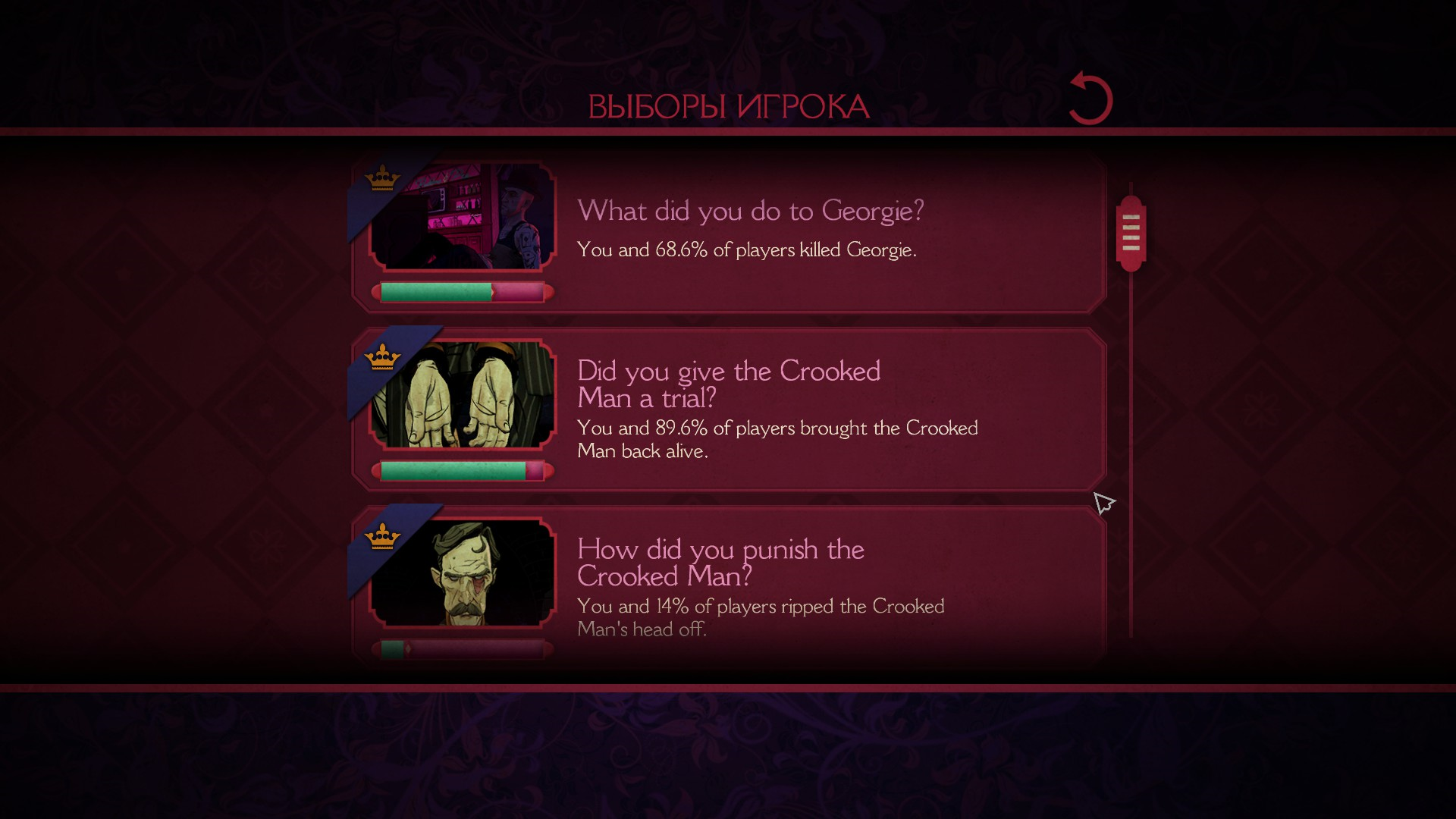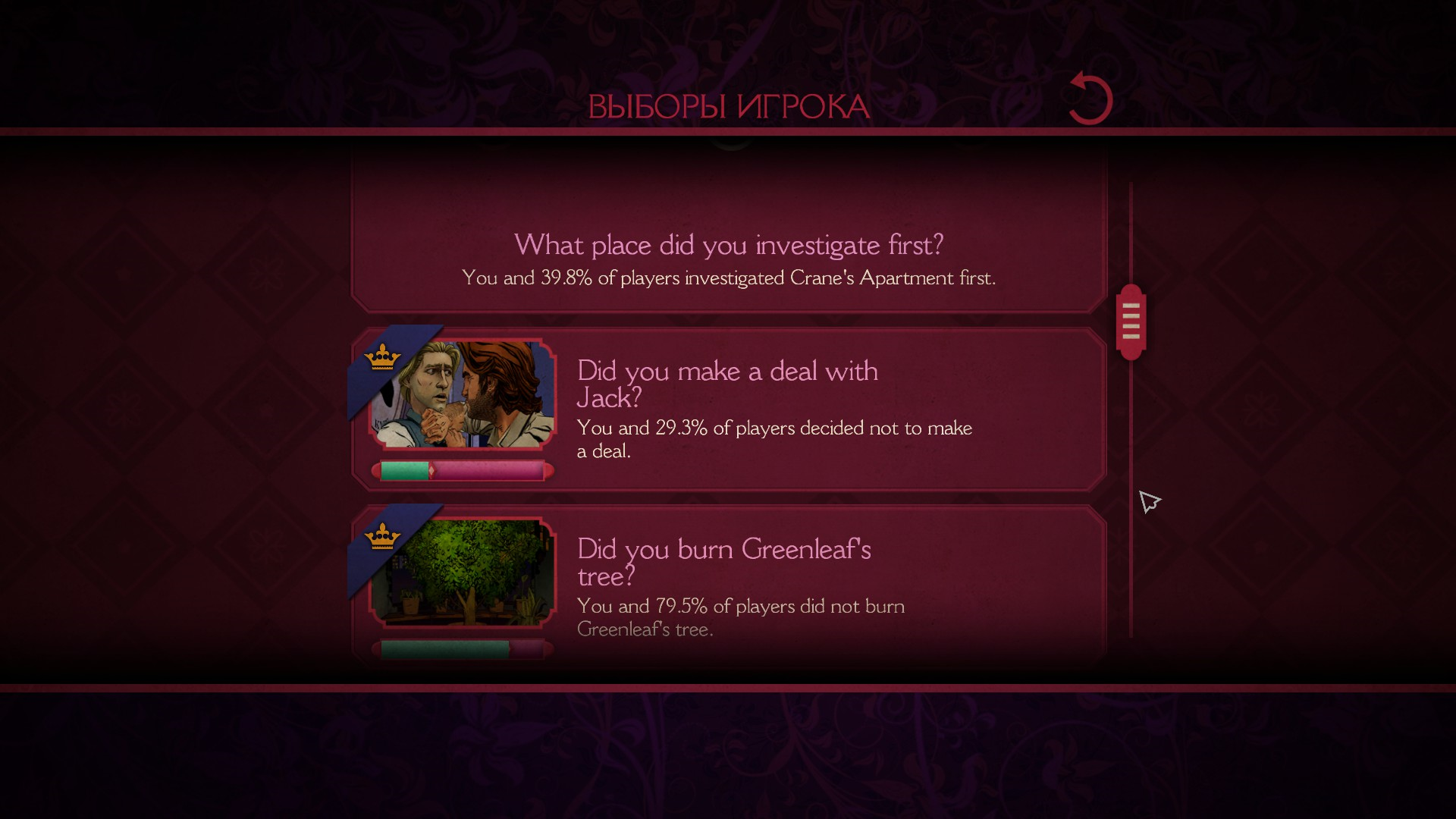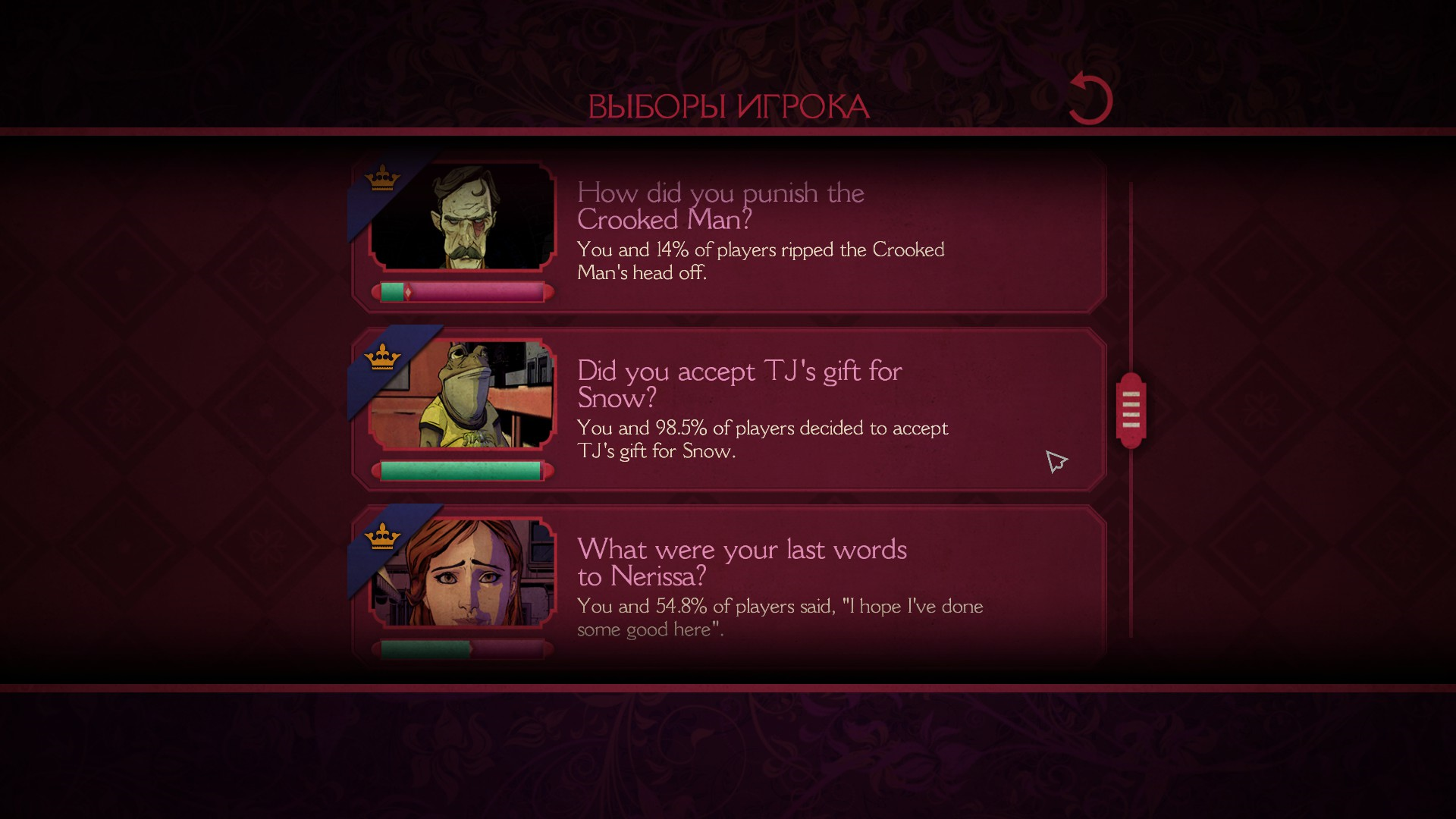 Также, после каждого эпизода можно посмотреть выборы, которые сделал игрок, а также глобальную стату по всем игрокам.