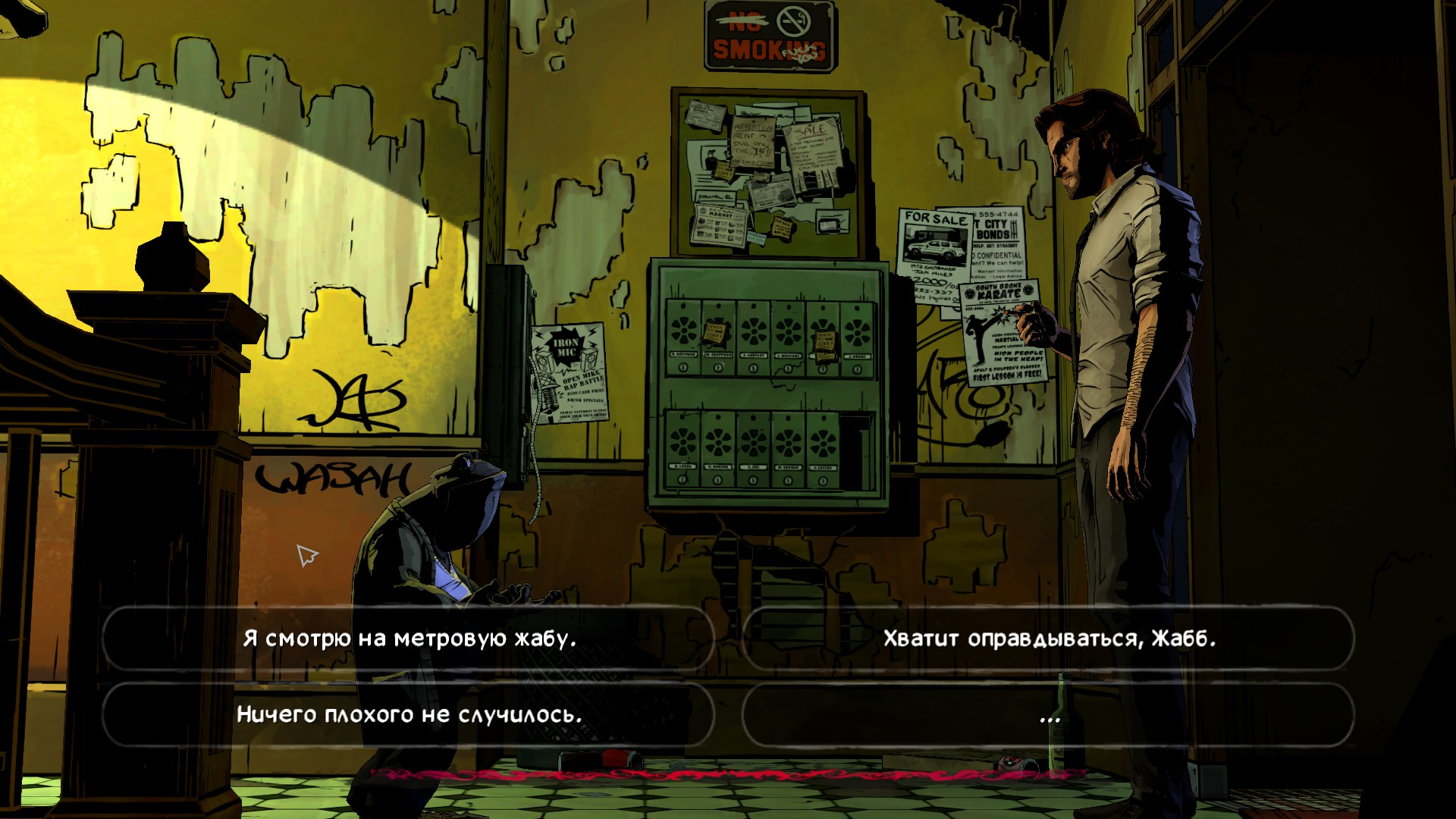 Плохие стороны игры исходят от самого жанра игры - отсутствует нужная интерактивность, игрок смотрит кино и иногда нажимает на кнопки, чтобы управлять персонажем. Также, что лично мне не понравилось, множество жителей Фейблтауна относятся к Бигби негативно - это можно нейтразировать путем хороших деяний и позитивной кармой, но так и хочется дать очередному хаму по ебалу и ни с кем не церемонится. Собственно, игра и диктует выбор дипломата или воителя. В конце концов, не сказал бы, что это сильно влияет на сюжет - все равно некоторых мертвых не спасти, а злодей мы поймаем в любом случае.