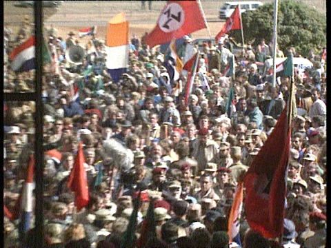 The Afrikaner Volksfront (AVF) coalition (a heterogeneous coalition that included white Afrikaner “nationalists”; Boer nationalists; and many former generals of the armed forces of the RSA Empire) announced that a public protest meeting was to take place outside the huge building on 25 June 1993 and that the AVF leaders, Terre'Blanche included, were to hand over a petition to the main negotiating forum demanding that they take cognizance of the demands of the AVF.