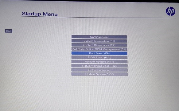 The esc key for startup menu