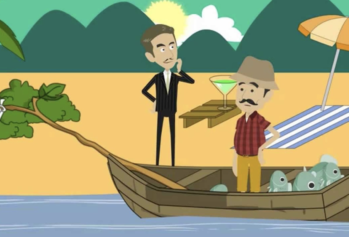 The fisherman calls a fish
