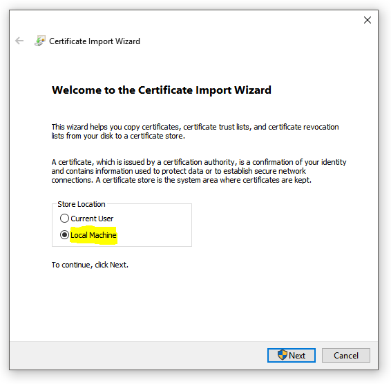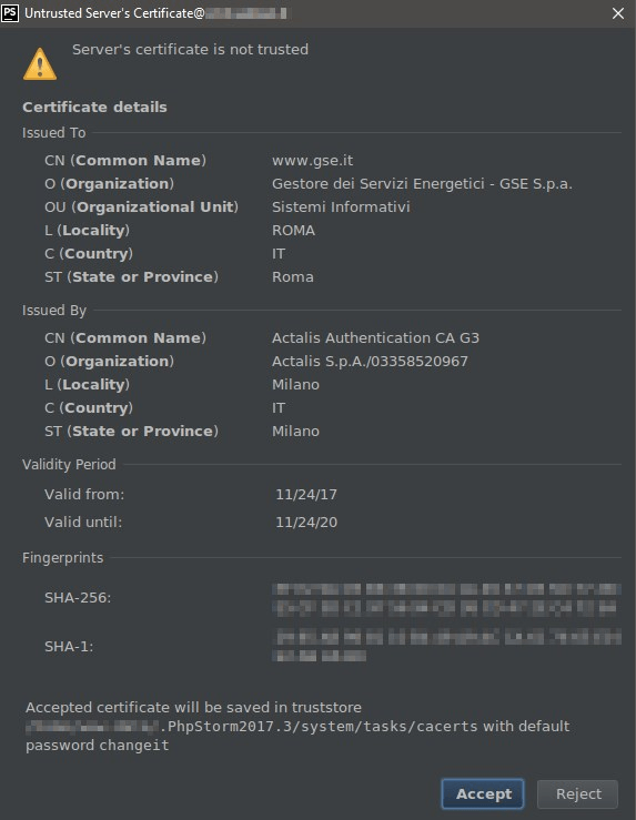 The server certificate is not trusted