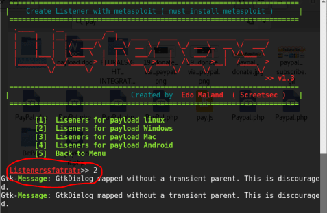 Затем вы увидите новое меню, похожее на меню на скрине экрана выше, выберите опцию 6 «Создать Backdoor с C / Meterperter_reverse_tcp (FUD 97%)»