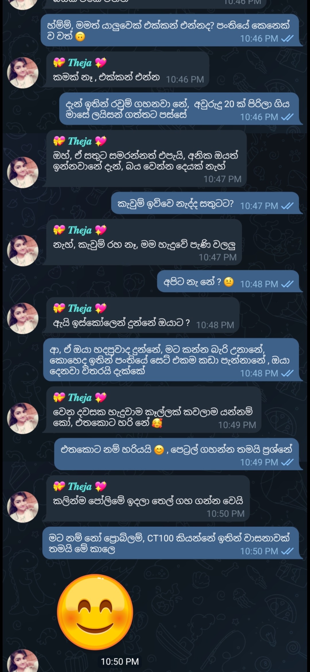 පොඩි හිනාවකුයි, චූටි තරහකුයි දෙකම තියාන මං දිහා බලන් හිටියත් එයා මොකුත් කීවේ නැහැ 😊