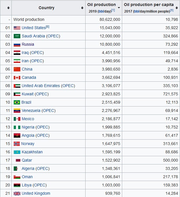 In 2019, 80 million barrels per day (bpd) were produced in the world. The main producing countries were the United States, Saudi Arabia and Russia. The United States has recently appeared on this list, and it cannot be said that traditional industry leaders were happy about this. The Americans pulled ahead thanks to the “shale revolution”: the ability to extract oil deep from the ground using hydraulic fracturing technology. Although, this method made oil production an expensive procedure.