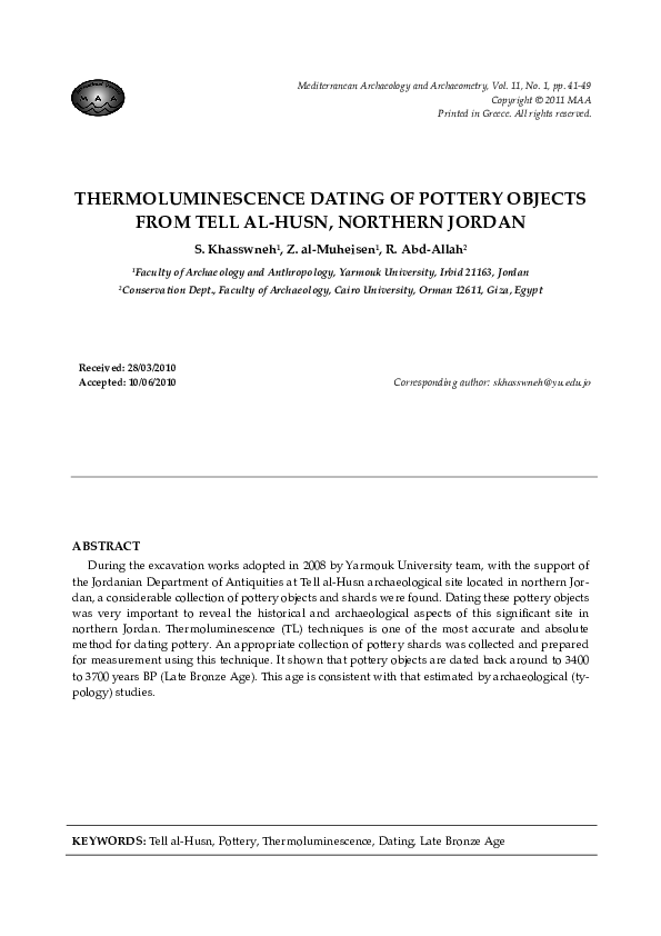 (PDF) Thermoluminescent Dating of Archaeological Pottery