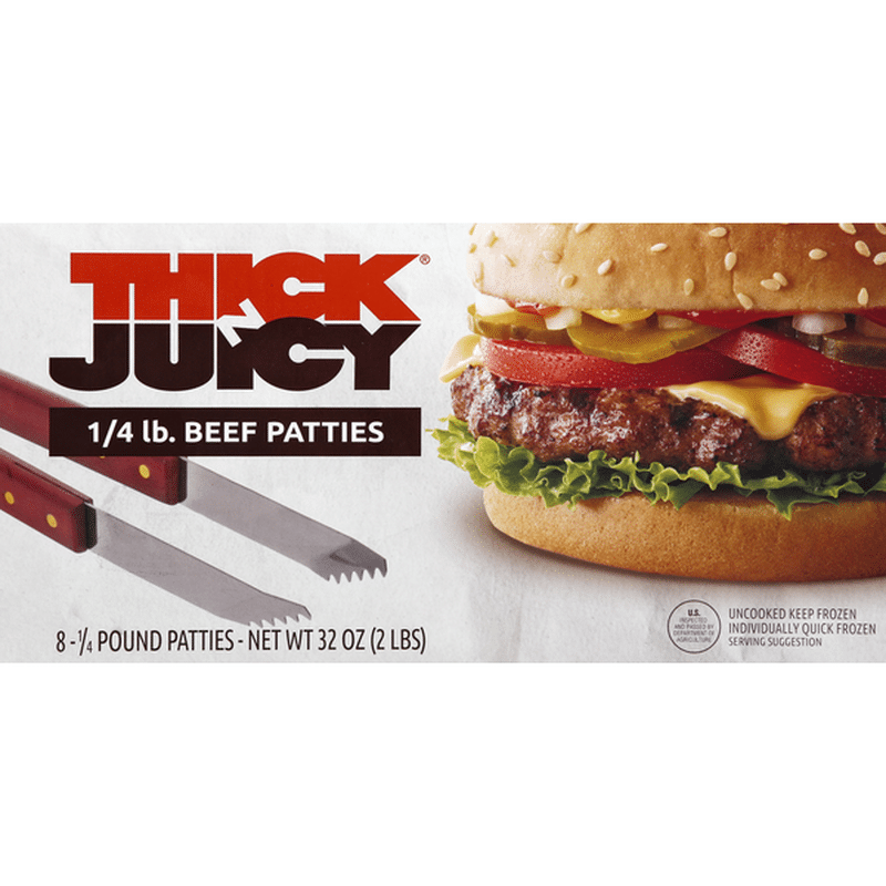 Get in on the THICK N JUICY phenomenon . There's a product to fit almost any menu, from half pound certified Angus burgers to 3-ounce sliders . Each one designed to build your customer base - and your bottom line . Scroll down to see our product details or click the image below to download our full product spec sheet .