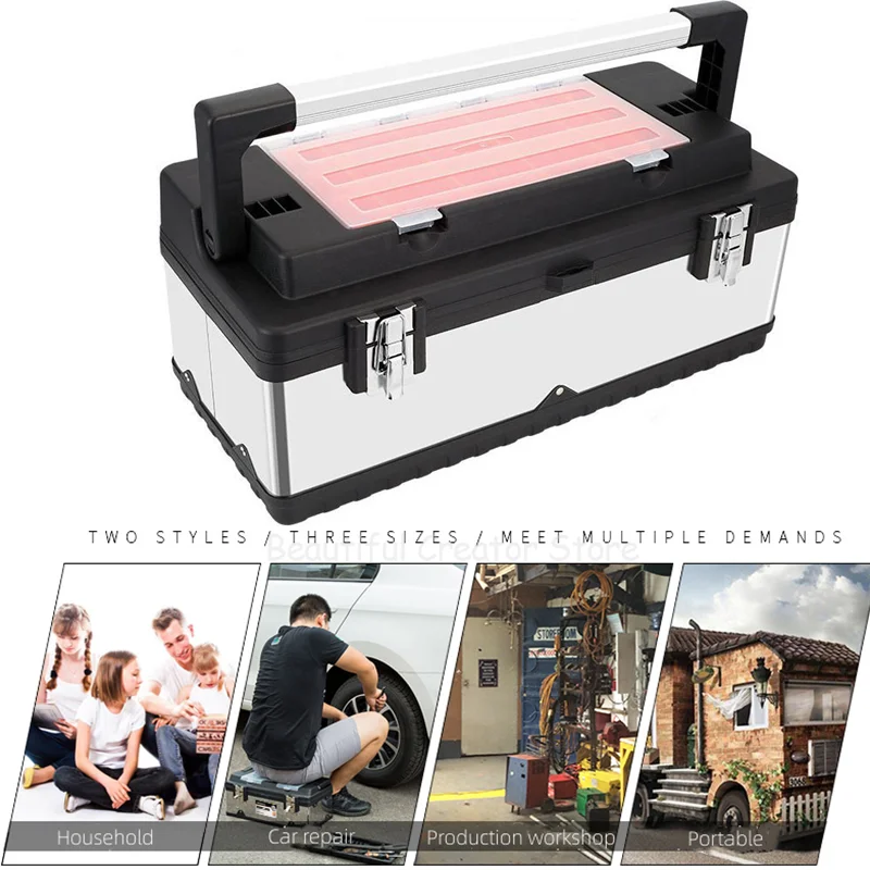 RTIcaEPxUHere you can buy Thicked Stainless Steel Tool Box Hardware Tool Storage Box multifunctional tool box Portable Electrician Toolbox Organizer Box with free delivery to your post office.