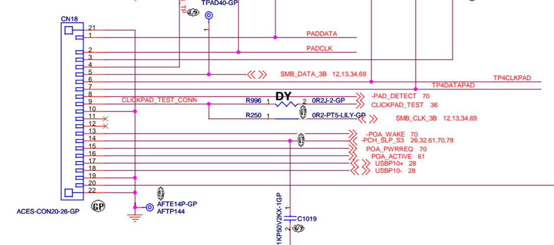 - PADCLK/PADDATA lines from the touchpad are connected to the IPDCLK/IPDDATA, and trackpoint's bus is connected to the TP4CLKPAD/TP4DATAPAD lines' pair which is going to...