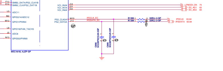 On the other end there are IPDCLK/IPDDATA lines coming to the embedded controller MEC1619. It's the PS/2 bus' destination from where its data is delivered to the chipset by the LPC bus.