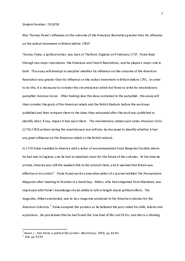 Thomas Paine Essay Examples - Free Research Paper Topics . . .