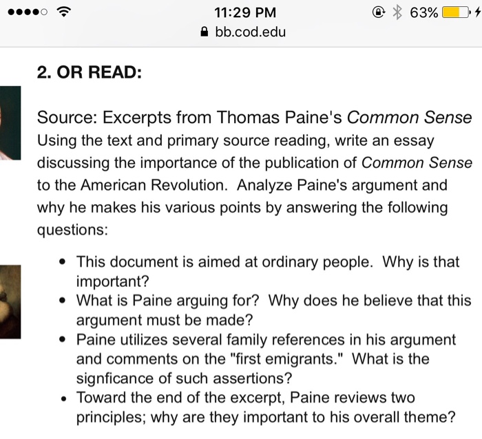 Thomas Paine Common Sense Essay - 654 Words | Internet . . .