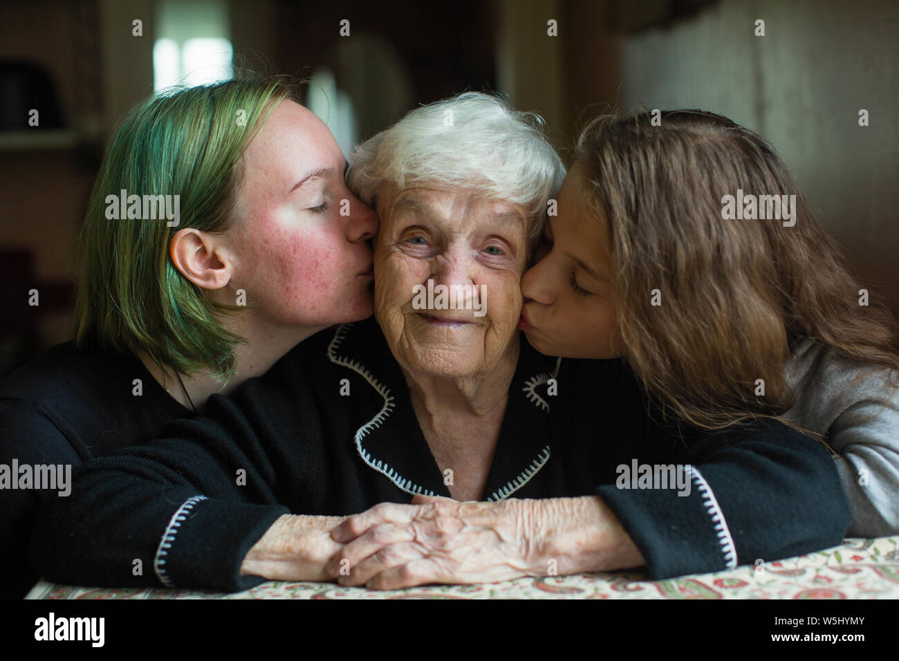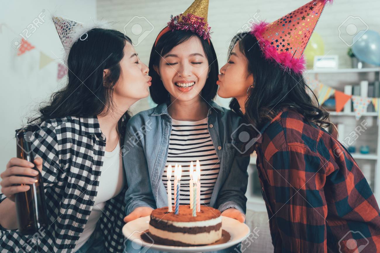 Three Asian Girls Kissing