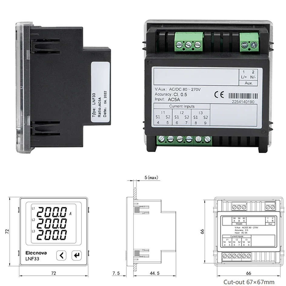 Three Phase Digital LCD AC Ammeter Volt Ammeter 72mm Panel Mounted Galvanometer Amp Meter Current Frequency-Support CT LNF33 - Купить с бесплатной доставкой