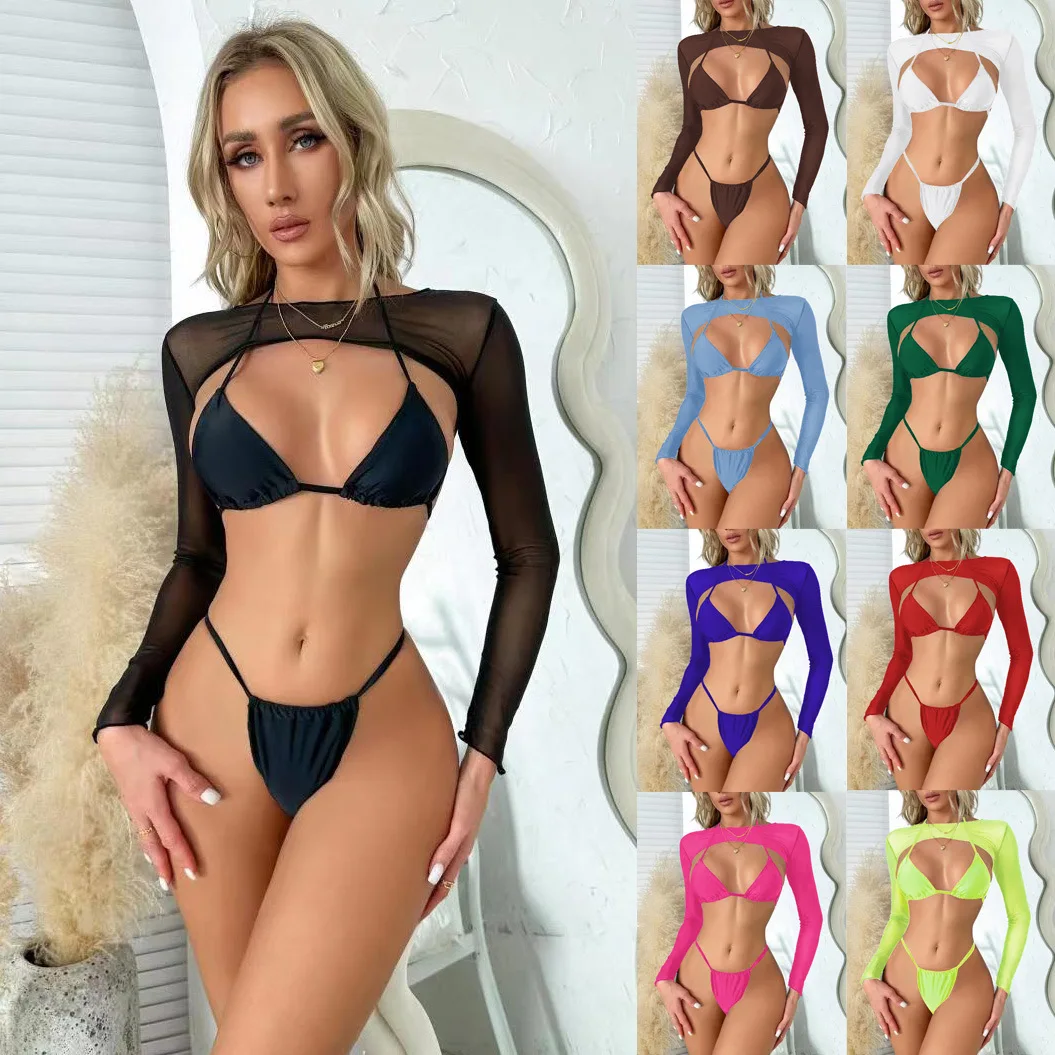 ZKcylKgOtqHere you can buy Three Piece Swim Set Custom Logo G String Halter Bathing Suit Quick Dry Swimsuit With Cover Up Solid Micro Triangle Bikini Set with free delivery to your post office.