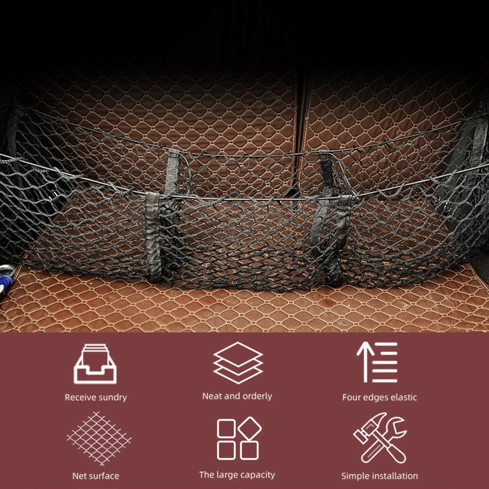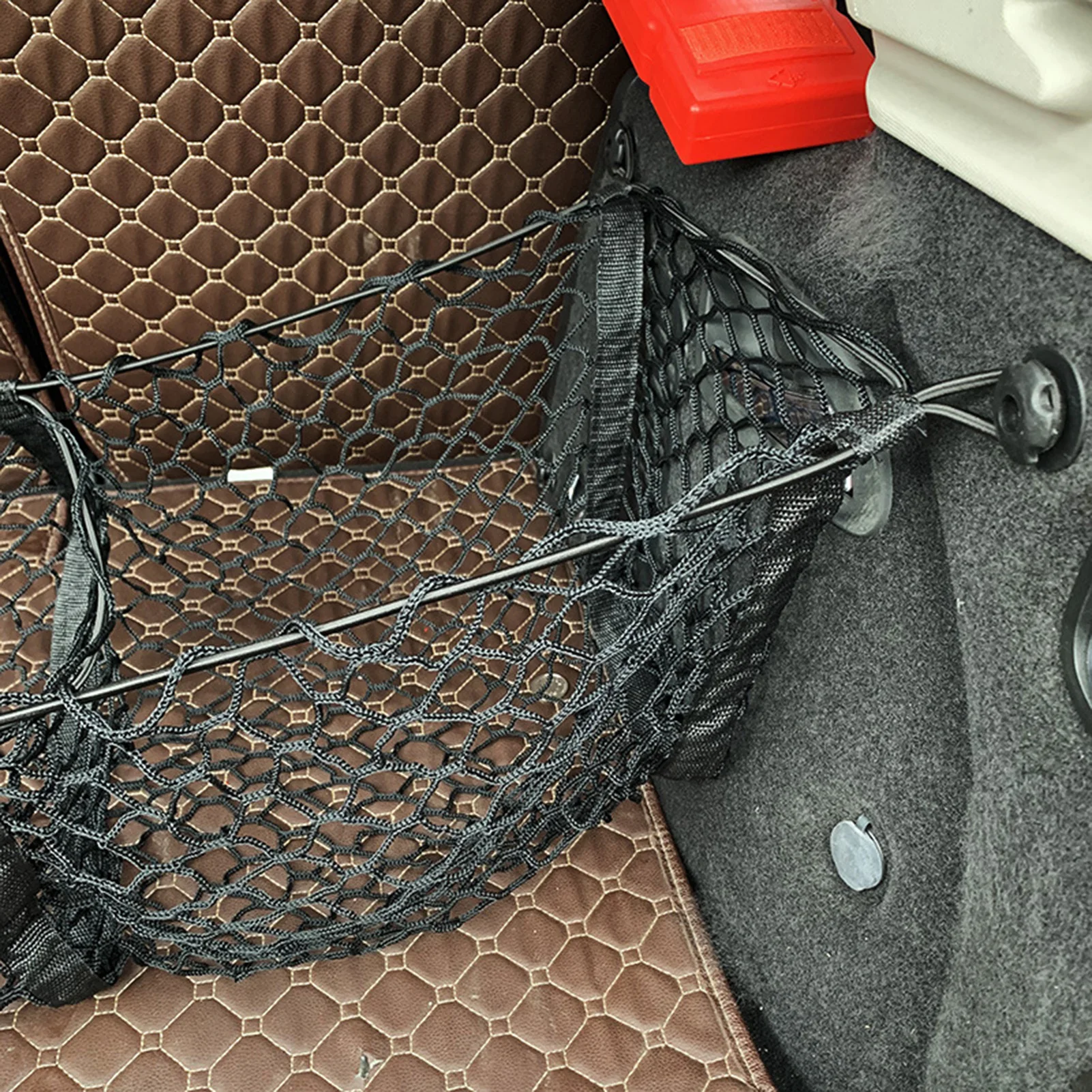 «Three Pockets Trunk Organizer Storage Net Heavy Duty Cargo Net for Car SUV Pickup Bed Black Mesh Four Metal Carabiners» по лучшей цене на рынке! Всего за 8$ (760рублей)
